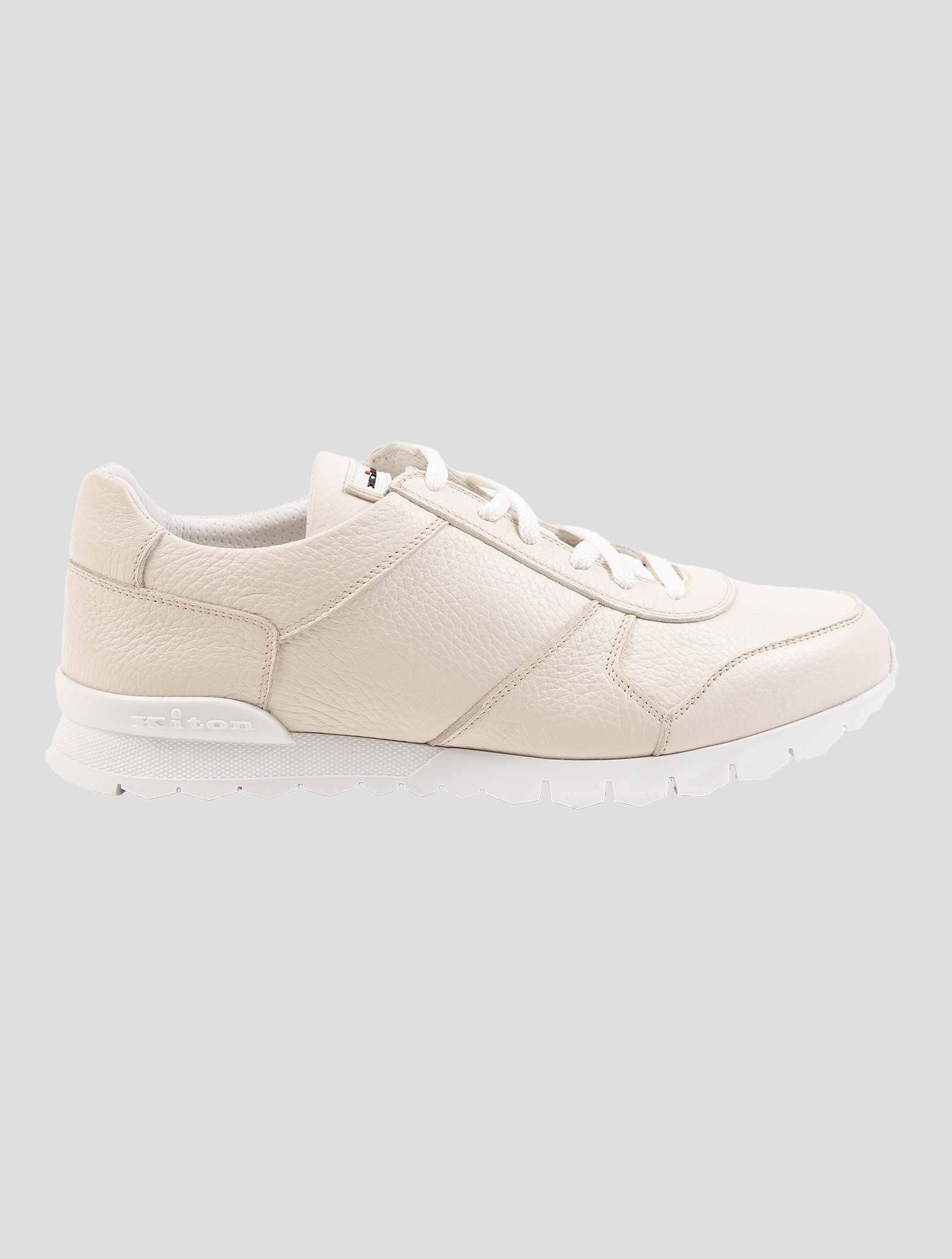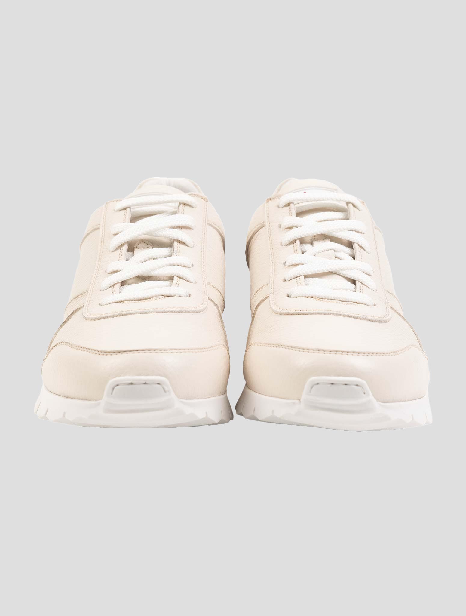 Kiton tenisice od 100% bijele kože predstavljaju bit talijanskog luksuza i umjetničkog umijeća. Stručno izrađene u Italiji od najfinije prave kože, ove tenisice nude iznimnu mekoću, izdržljivost i bezvremensku eleganciju. Čisti bijeli dizajn odiše sofisticiranošću, lako se kombinirajući s ležernim i profinjenim odjevnim kombinacijama. Minimalistička silueta i precizni detalji ističu Kitonovu predanost savršenstvu. Kožna podstava i uložak s jastučićima osiguravaju vrhunsku udobnost, dok čvrsti gumeni potplat pruža izvrsno prianjanje i dugotrajnost. Svestrane i profinjene, ove tenisice utjelovljuju predanost brenda kvaliteti, udobnosti i suvremenom, decentnom stilu za modernog gospodina.
