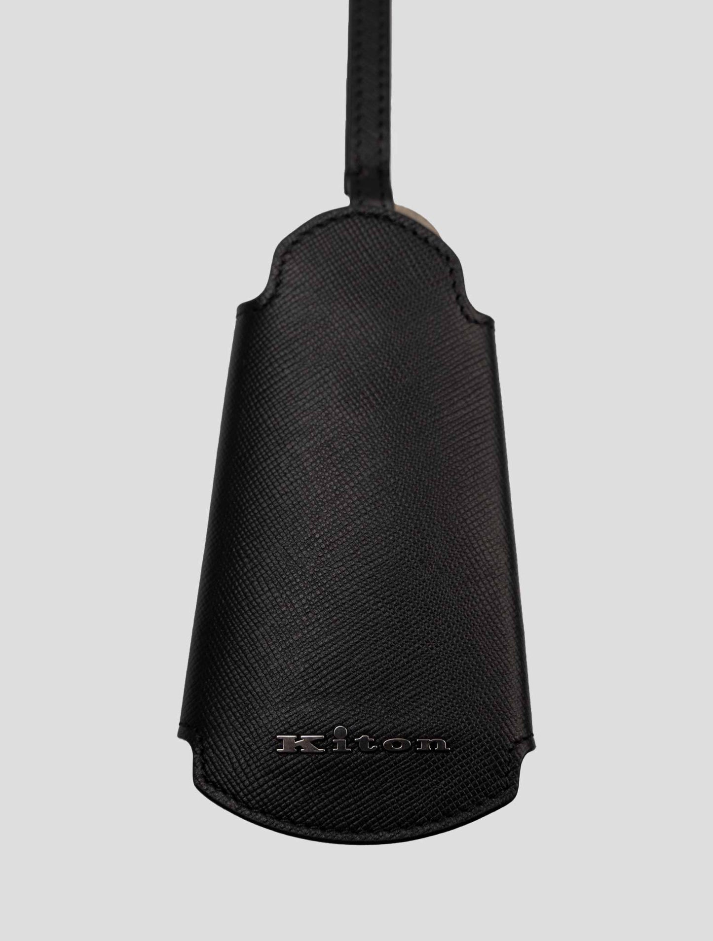 This handmade leather keychain features functional buttons that provide a unique and secure closure system for enhanced usability. The meticulous detailing showcases fine stitching and subtle Kiton branding, reflecting the brand's commitment to superior Italian craftsmanship and luxury accessories.