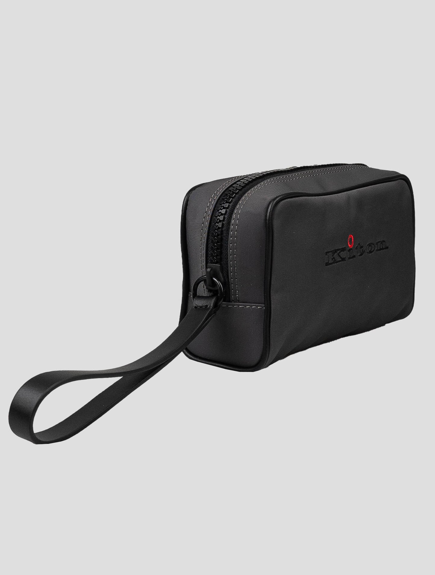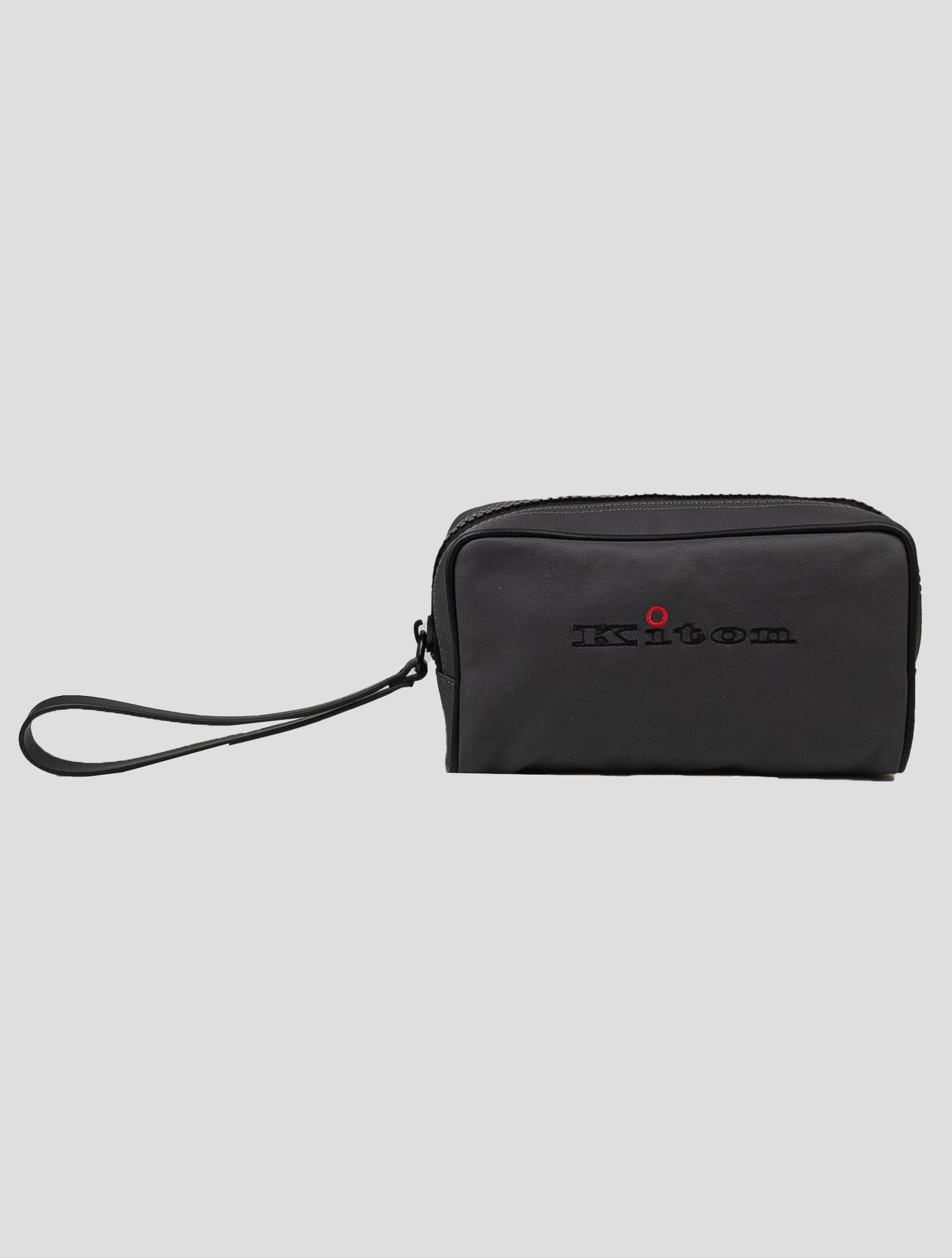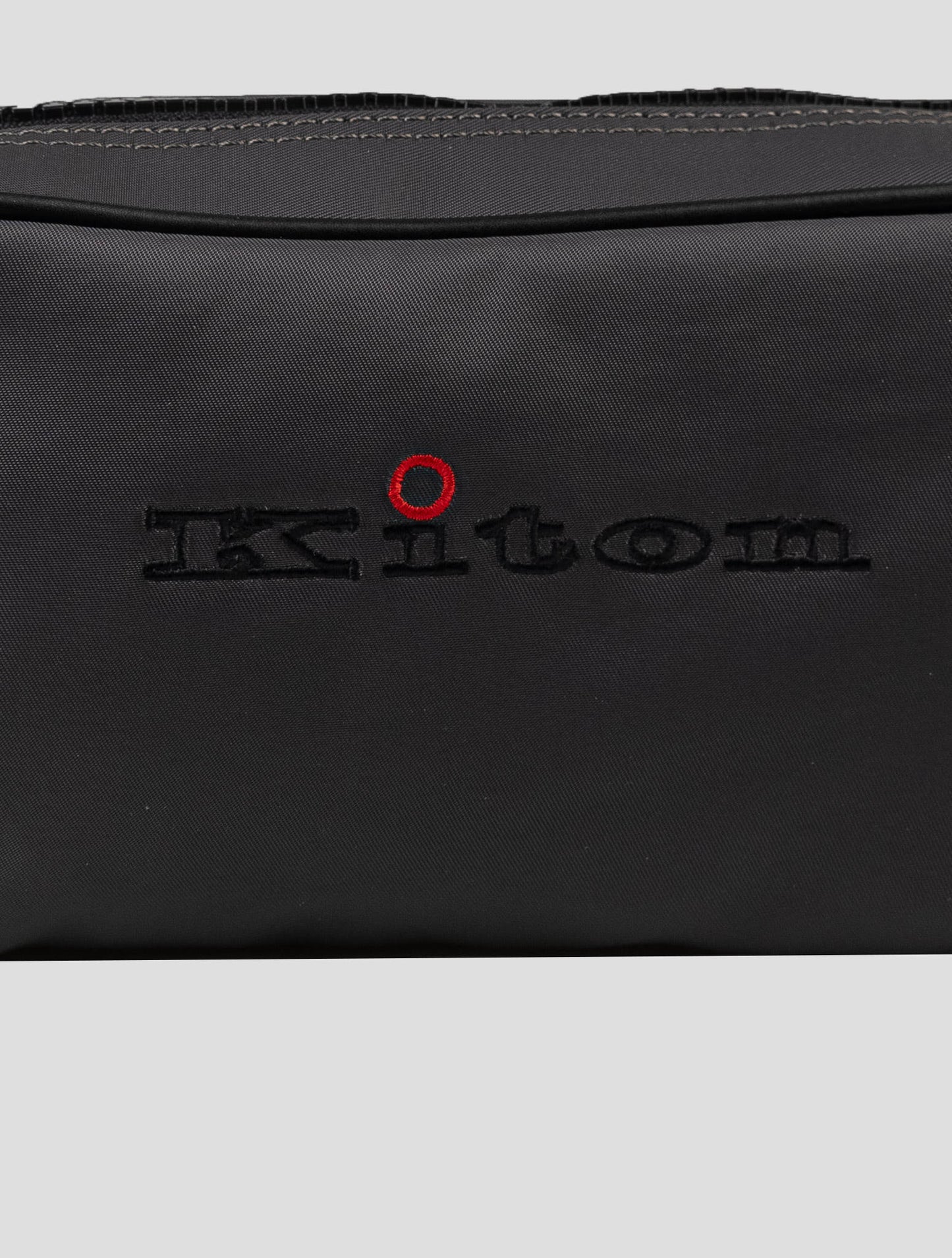 The Kiton men's beauty case is a refined accessory, made from 100% PA (polyamide) with luxurious leather inserts. Designed for the modern man, this sleek gray pochette offers both style and functionality. The embroidered Kiton logo adds a touch of sophistication, reflecting the brand's attention to detail and craftsmanship. Ideal for travel or everyday use, it features a spacious interior to store grooming essentials and personal items. Lightweight and durable, the combination of premium materials and elegant design makes this beauty case a must-have accessory for those who appreciate quality and timeless style. | Mod:UBA0026N008080-1