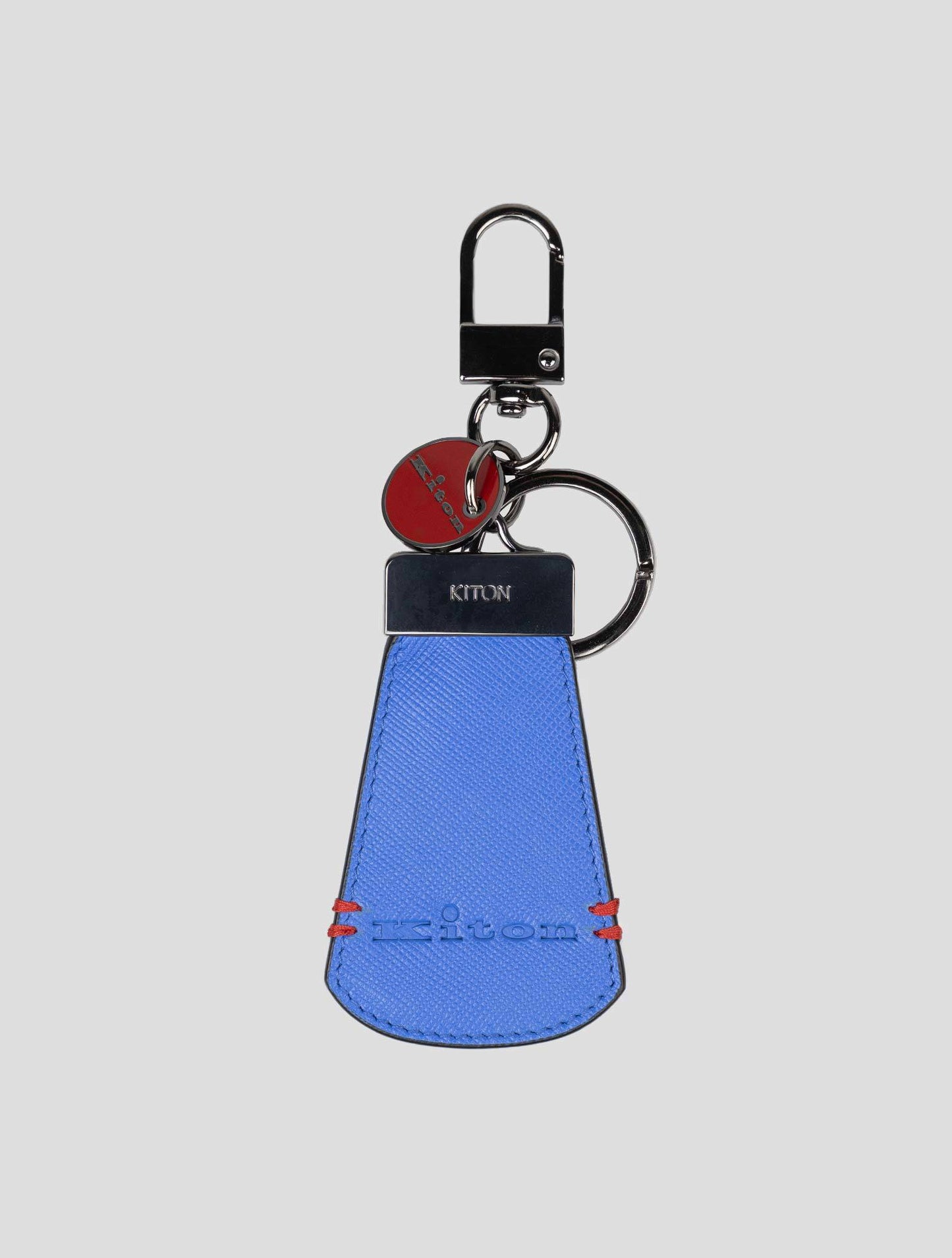The Kiton Light Blue Leather Keychain is a sophisticated accessory that merges functionality with luxury. Crafted from 100% premium leather, it features a smooth, refined texture in an elegant light blue hue, adding a touch of personality to your everyday essentials. Designed with meticulous attention to detail, it boasts fine stitching and subtle Kiton branding, reflecting the brand's commitment to excellence. The compact and lightweight design ensures ease of use, while the durable metal hardware securely holds your keys. Perfect as a stylish personal accessory or a thoughtful gift, this keychain is a versatile addition to any modern lifestyle. | Mod: UPEA021N012280-1