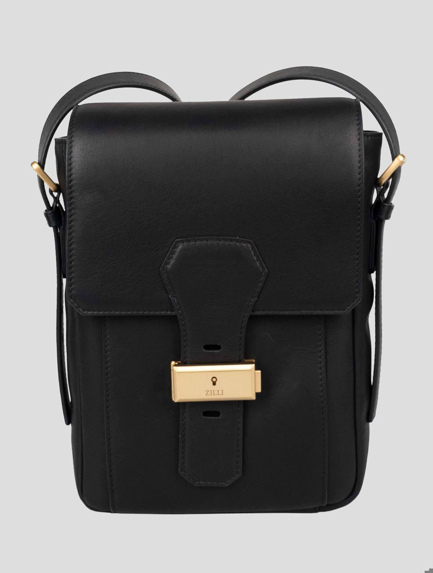 The Zilli Black Leather Crossbody Bag is a refined accessory crafted from 100% premium leather, merging elegance with functionality. Its solid black design exudes a sleek and minimalist appeal, perfect for modern, on-the-go lifestyles. Compact yet spacious, it features a well-organized interior with compartments to safely store essentials like a phone, wallet, and keys. The adjustable shoulder strap offers versatile and comfortable wear, while the durable leather ensures long-lasting quality. Discreet Zilli branding adds a touch of sophistication, making this crossbody bag an ideal choice for those who value luxury and practicality in a timeless design. | MOD: G0010AM1015VC0N