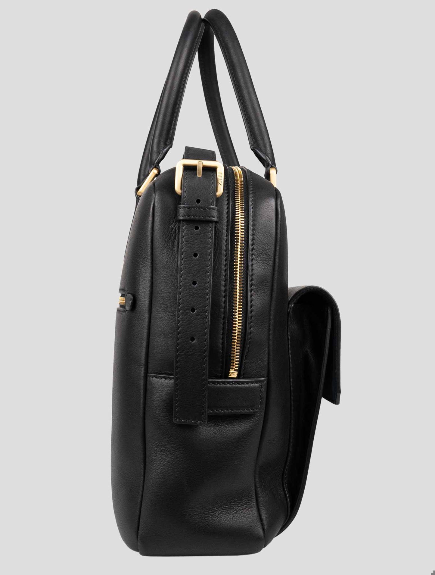 The Zilli Black Leather Briefcase is a symbol of sophistication and professionalism, crafted from 100% premium leather. This sleek, solid black briefcase is designed for the modern professional, offering both elegance and practicality. The structured design includes a spacious main compartment and organized interior pockets, ideal for documents, a laptop, and essentials. Its sturdy top handle and optional shoulder strap provide versatile carrying options for comfort and convenience. Discreet Zilli branding adds a touch of exclusivity, while the high-quality leather ensures durability and a polished look. This briefcase perfectly complements business attire, embodying refined luxury and functionality. | MOD: G0011AM1015VC0N