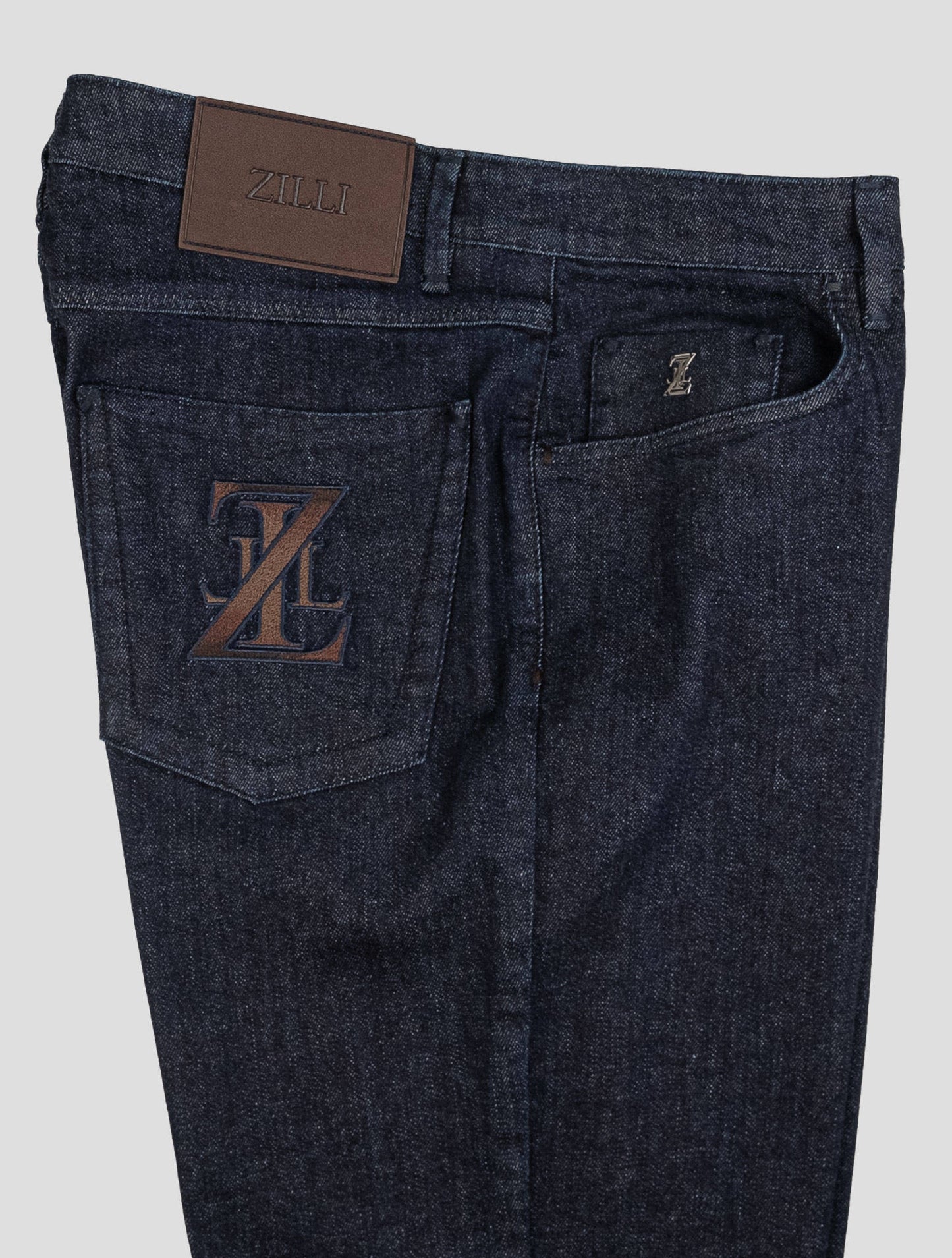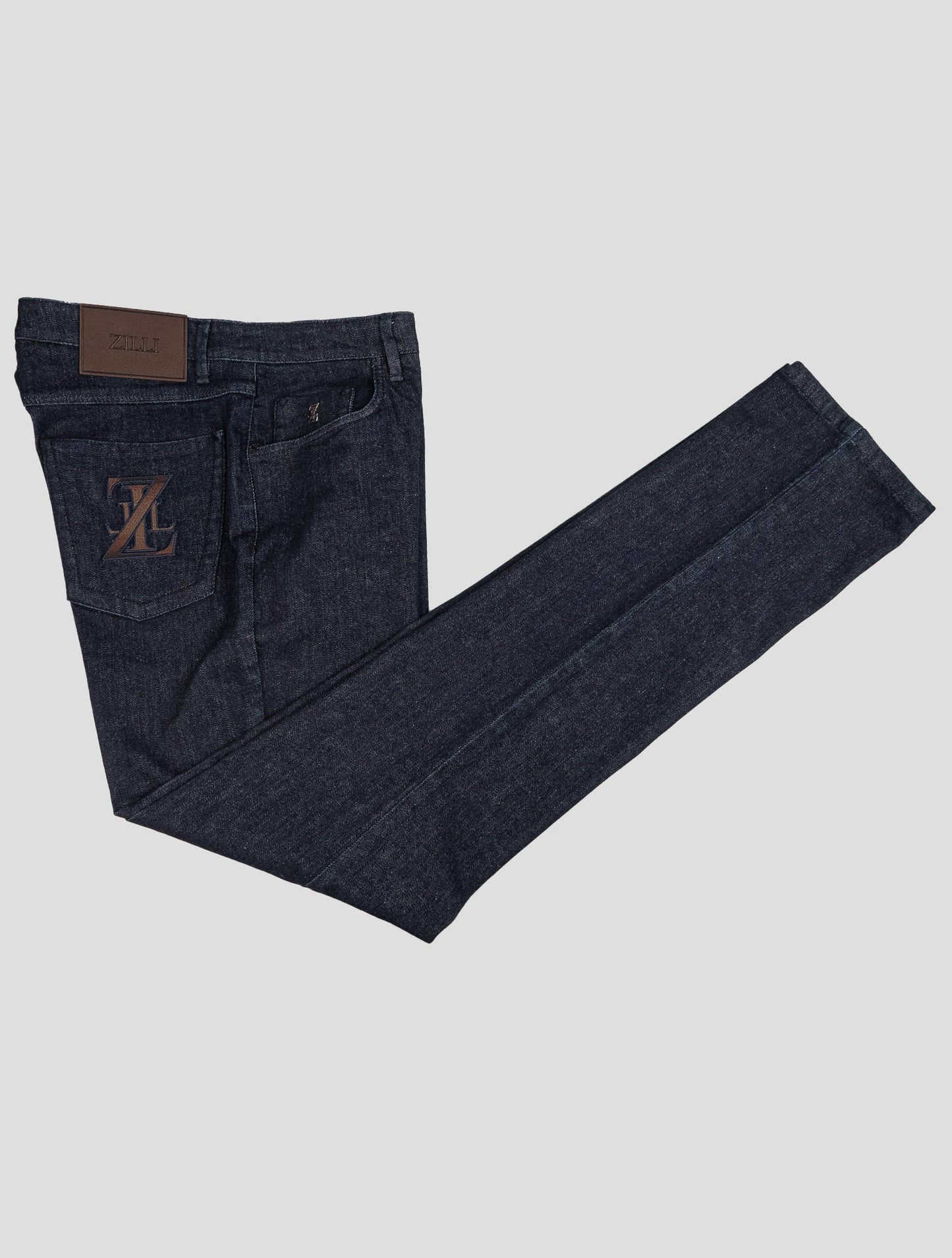 Zilli Jeans in Blue Navy solid cotton are a stylish and versatile choice for all seasons. Crafted from high-quality cotton with a touch of elastane (EA) for added comfort and stretch, these jeans feature a zip closure for ease of wear. The design is sleek and modern, with a clean, solid blue navy color that can be dressed up or down. A luxurious detail is the Nubuck leather label on the back, adding a refined touch to the overall look. These jeans are perfect for any occasion, offering both durability and style year-round. |