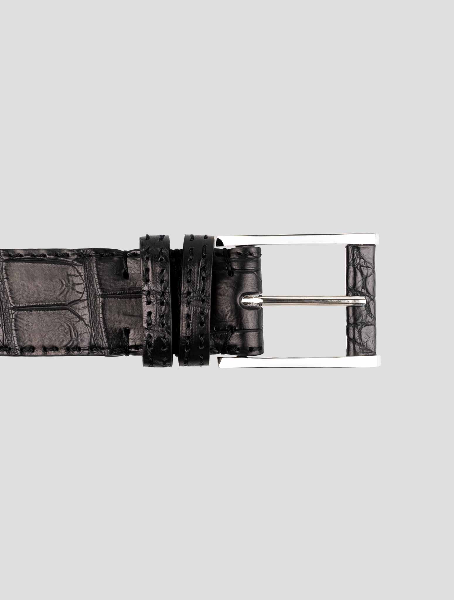 Kiton Black Crocodile Leather Belt - Italian Luxury Craftsmanship