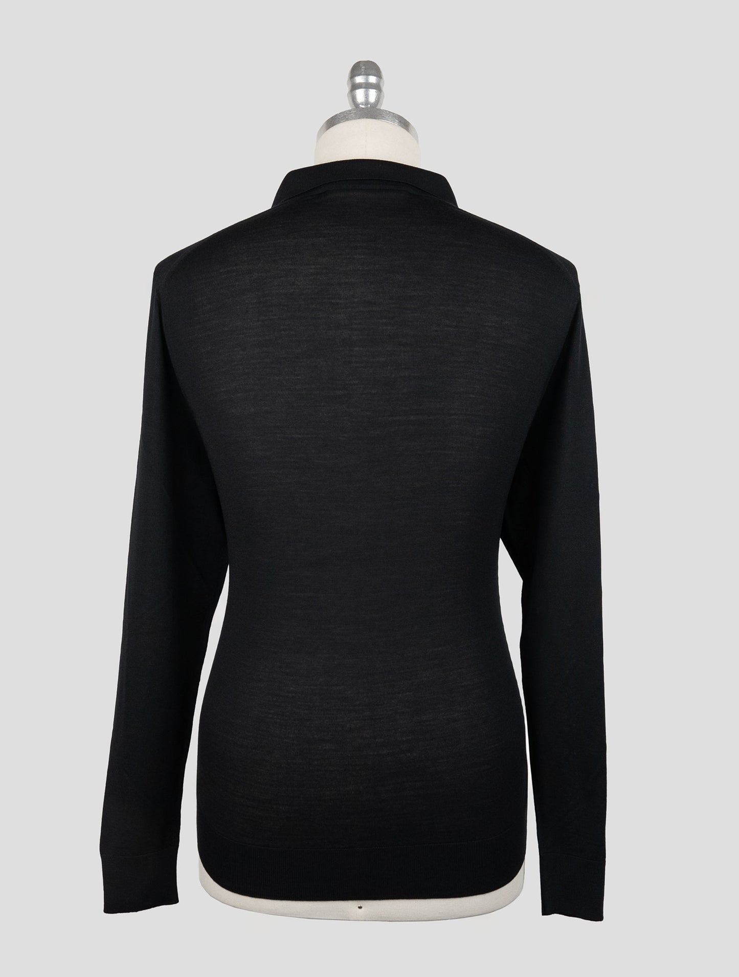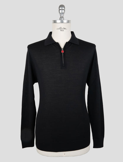 Refined and luxurious, the Kiton sweater polo in black solid is expertly crafted in Italy from ultra-soft 100% 14-micron wool, offering exceptional warmth, breathability, and a lightweight feel. This luxury men’s sweater features a half-zip closure, classic polo collar, and a tailored fit that combines casual sophistication with modern comfort. The rich black color ensures timeless elegance and versatile styling, ideal for layering under a jacket or wearing solo. A true expression of Kiton’s Neapolitan craftsmanship, this piece is perfect for those seeking Italian wool sweaters, 14-micron knitwear, and high-end men’s half-zip polos.