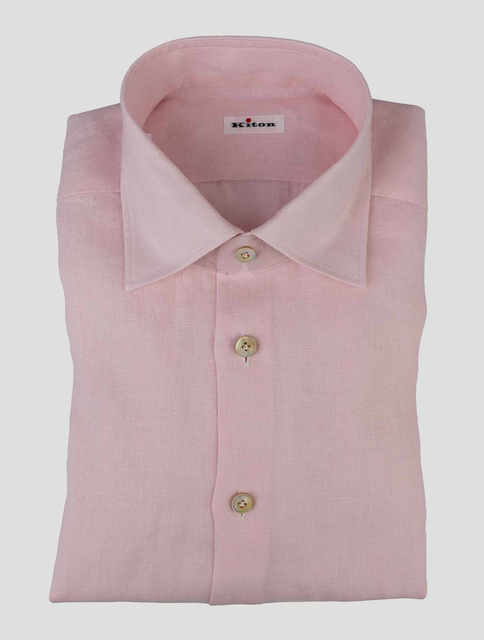 Our pink linen shirt is great for summer. It's light and airy but still looks fancy. The denim cotton shirt is more casual but still really well-made. It shows how Kiton can make even simple shirts look special.