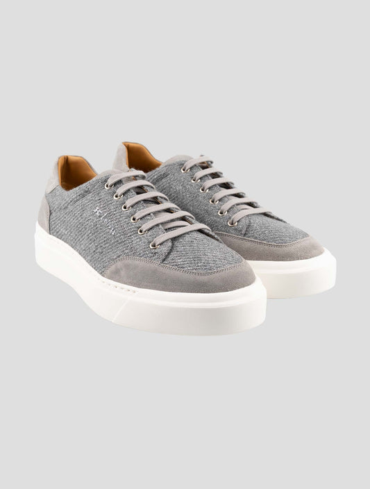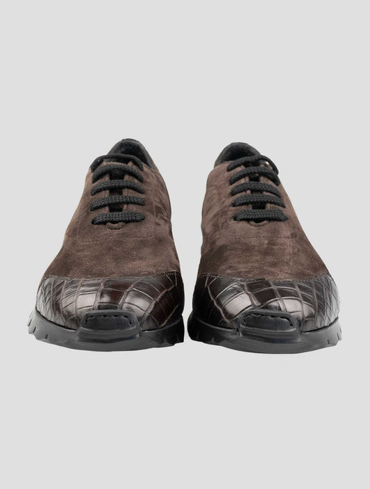 Santoni Brown Blue Cotton Ea Leather Nabuck Leather Sneakers