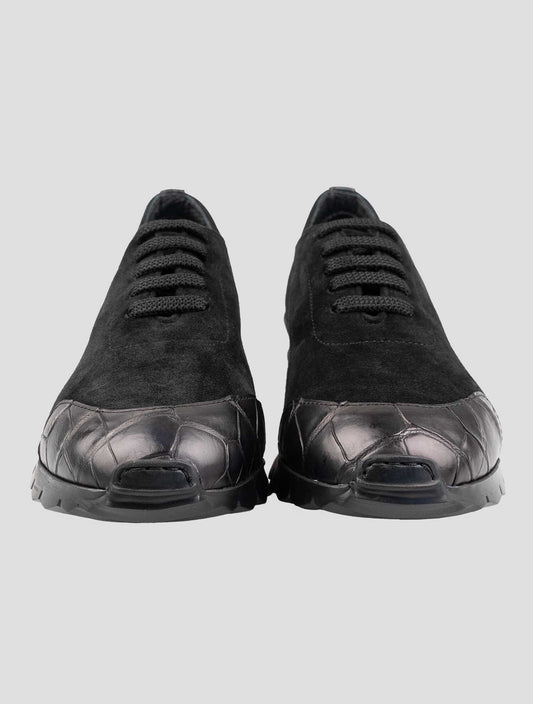 Kiton Black Cotton Leather Sneakers - Italian Luxury Footwear