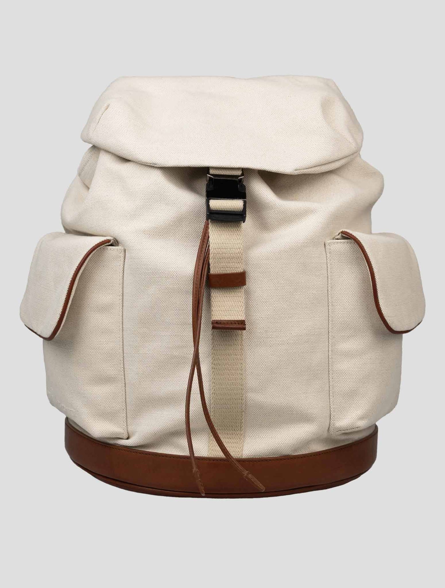 Kiton Beige Cotton Backpack - Italian Luxury Handmade Travel Bag
