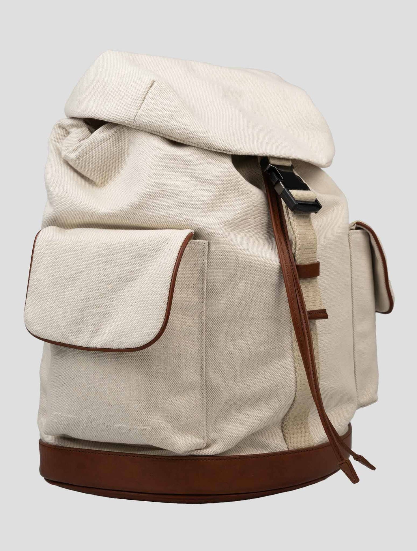 Kiton Beige Cotton Backpack - Italian Luxury Craftsmanship