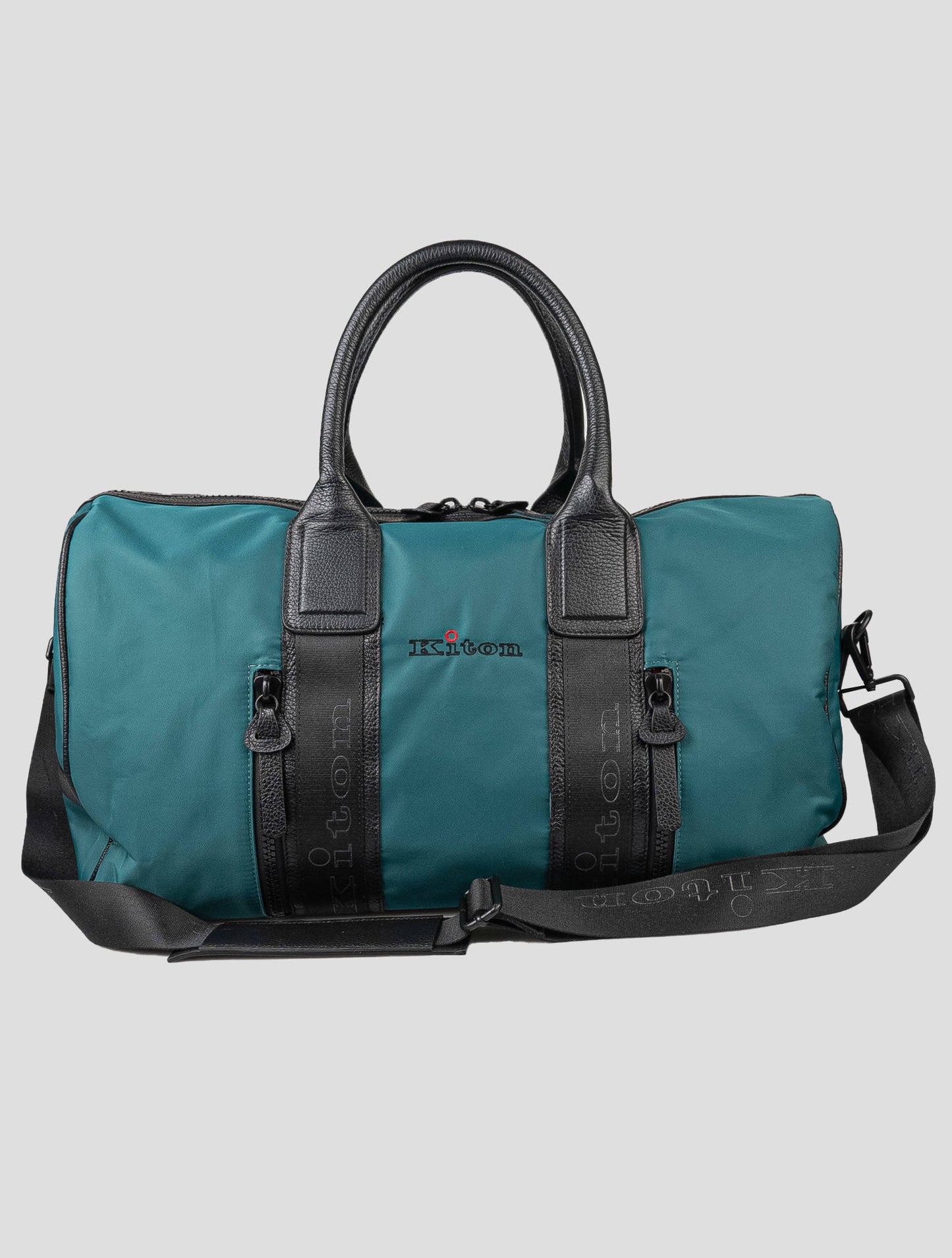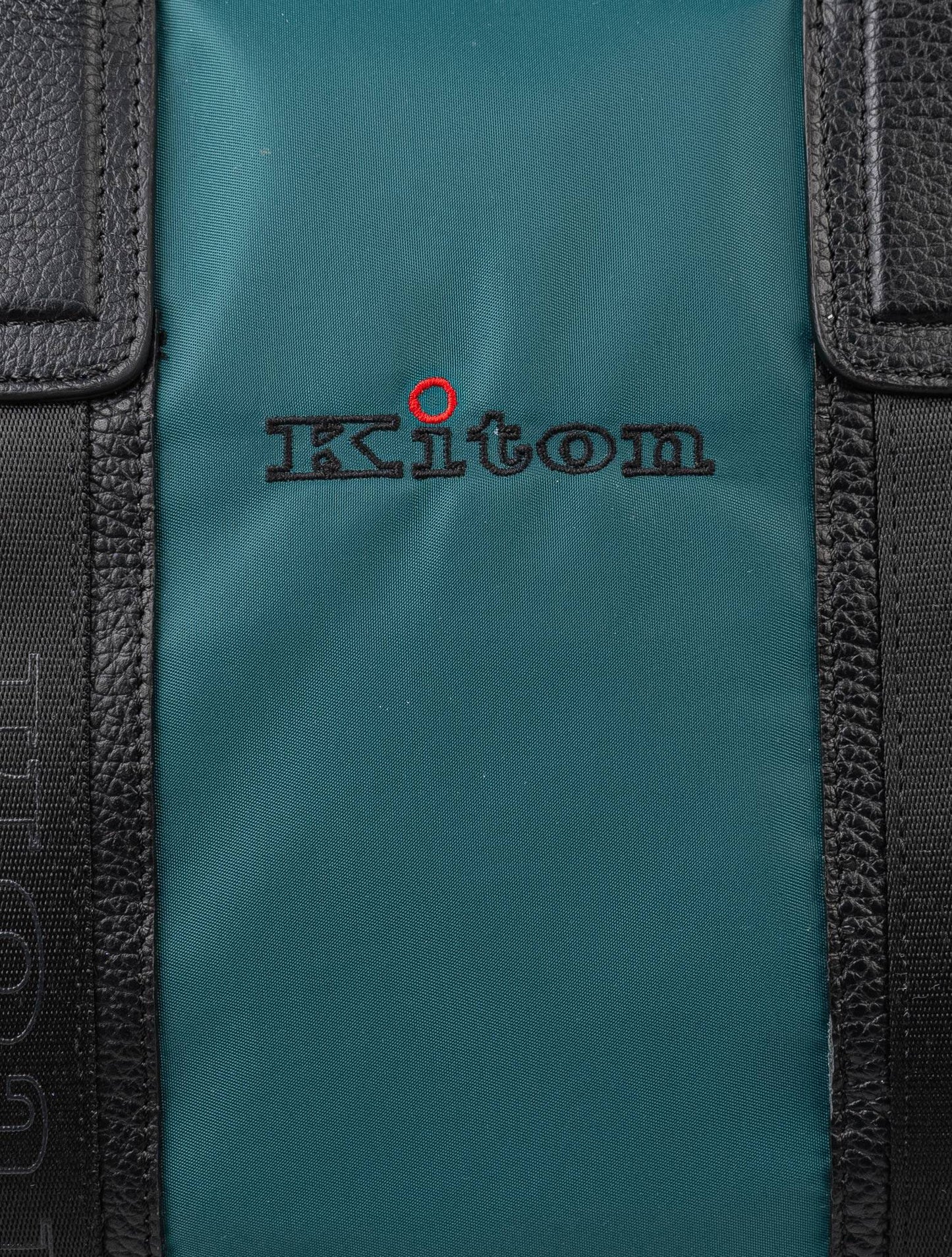 The Kiton green travel bag is a stylish and functional accessory, crafted from 100% PA (polyamide) with luxurious leather inserts. Designed for those who appreciate elegance while traveling, this bag combines durability with a refined aesthetic. The embroidered Kiton logo adds a signature touch, highlighting the brand's dedication to quality craftsmanship. Spacious and versatile, it offers ample room for all your travel essentials, while the sturdy handles and adjustable strap ensure comfort during transport. The vibrant green color and leather detailing make this travel bag a standout piece, perfect for both business trips and leisurely getaways. | Mod:UBA0123N008080