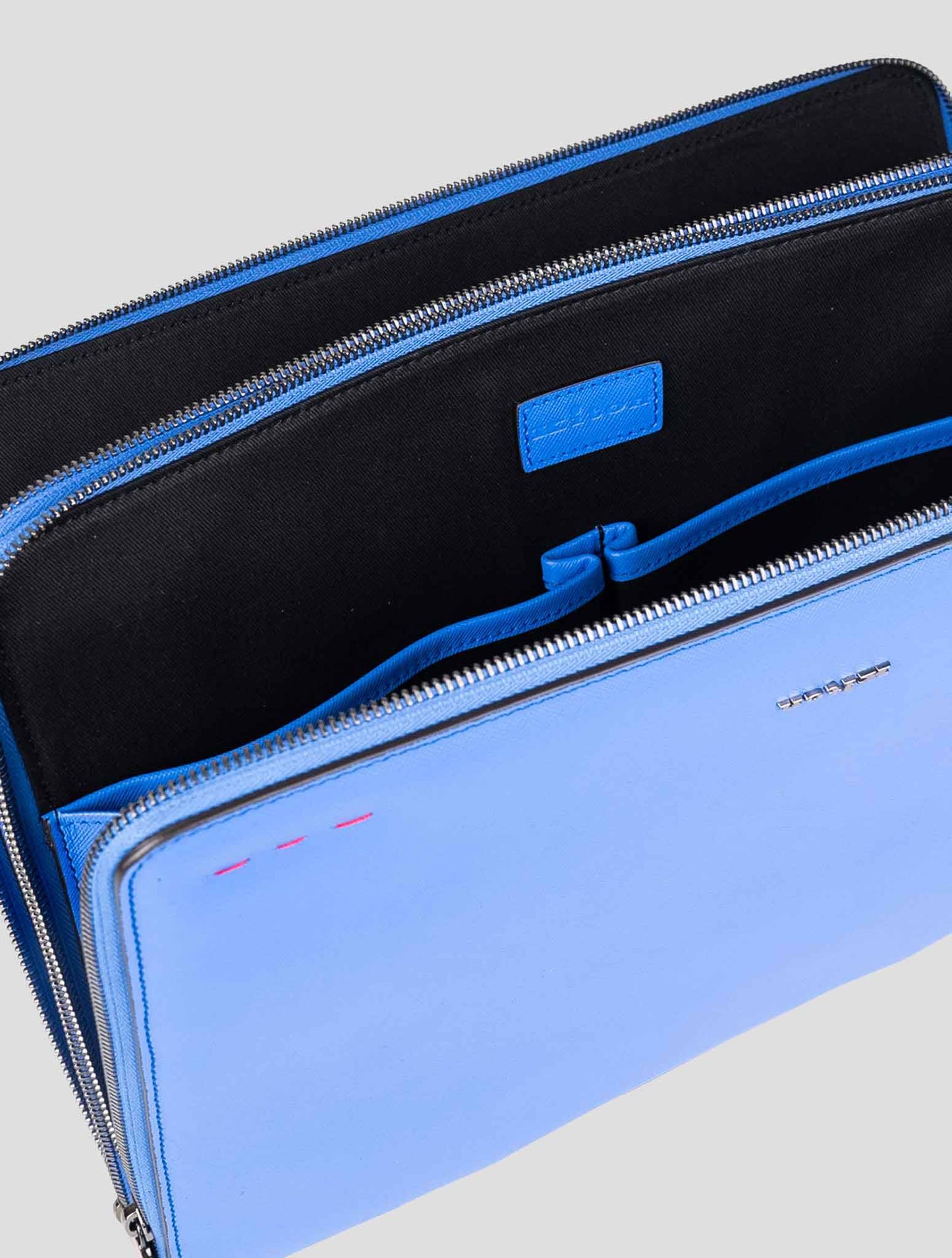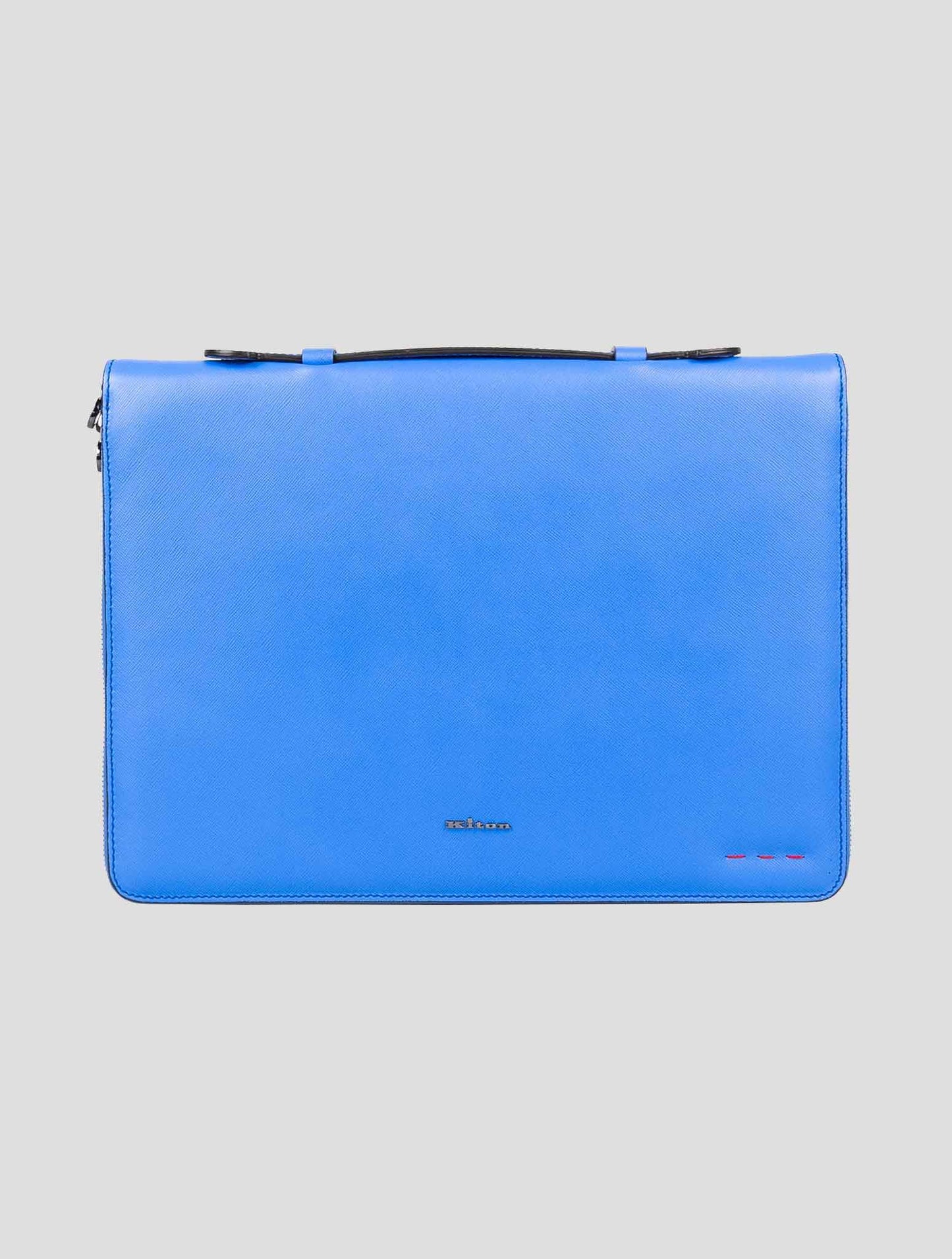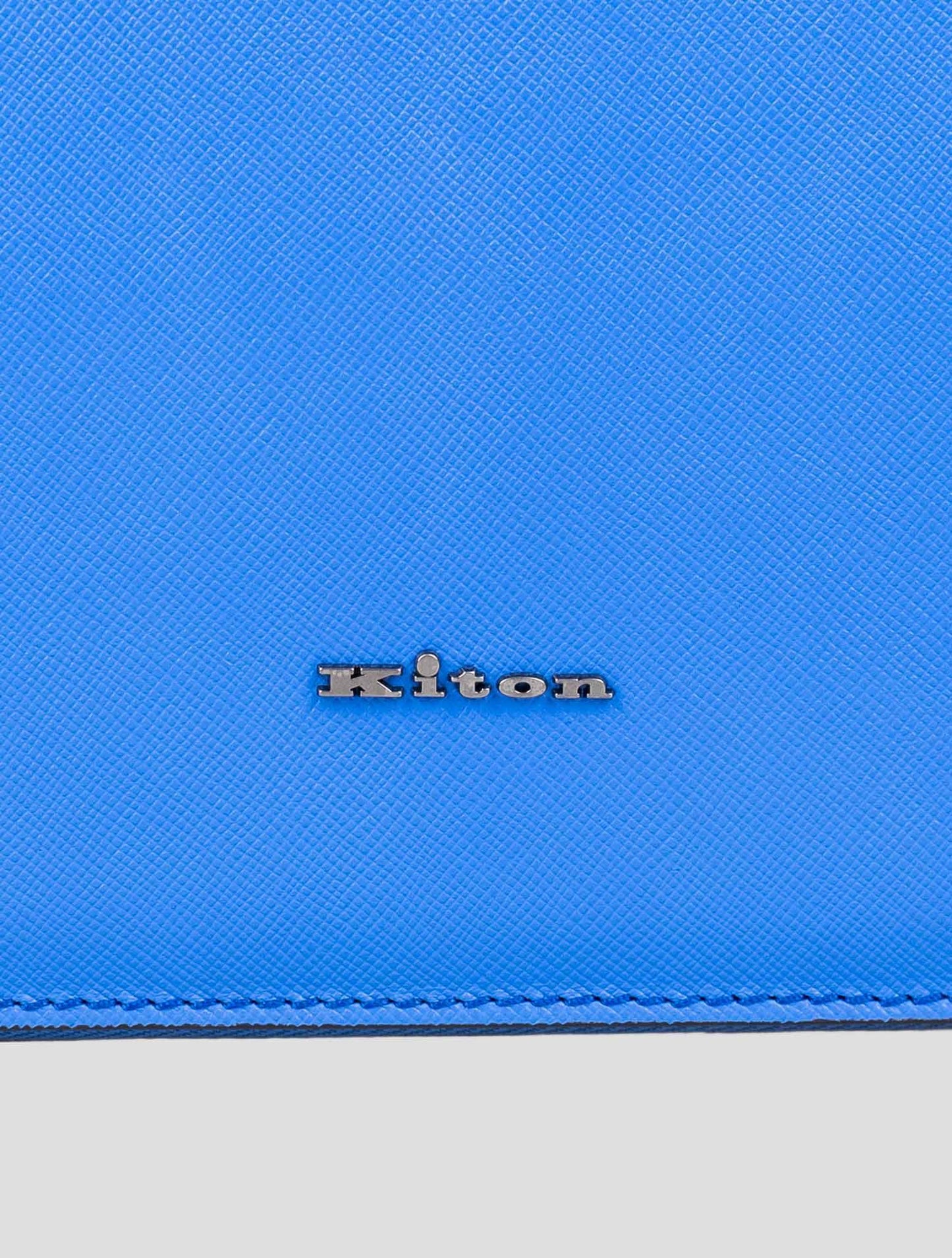 The Kiton Light Blue Leather Document Holder is a timeless accessory, crafted from 100% high-quality leather for an elegant and durable finish. Designed with practicality in mind, it offers ample space to organize important documents, making it an ideal companion for business meetings or travel. The sleek light blue exterior exudes sophistication, while the meticulous stitching and refined details showcase Kiton's unparalleled craftsmanship. Lightweight yet robust, it ensures your documents remain secure and neatly arranged. Whether for professional or personal use, this document holder combines functionality with luxury, embodying Kiton's commitment to exceptional design and quality for the modern, discerning individual. | Mod: UPEA031N012280-1