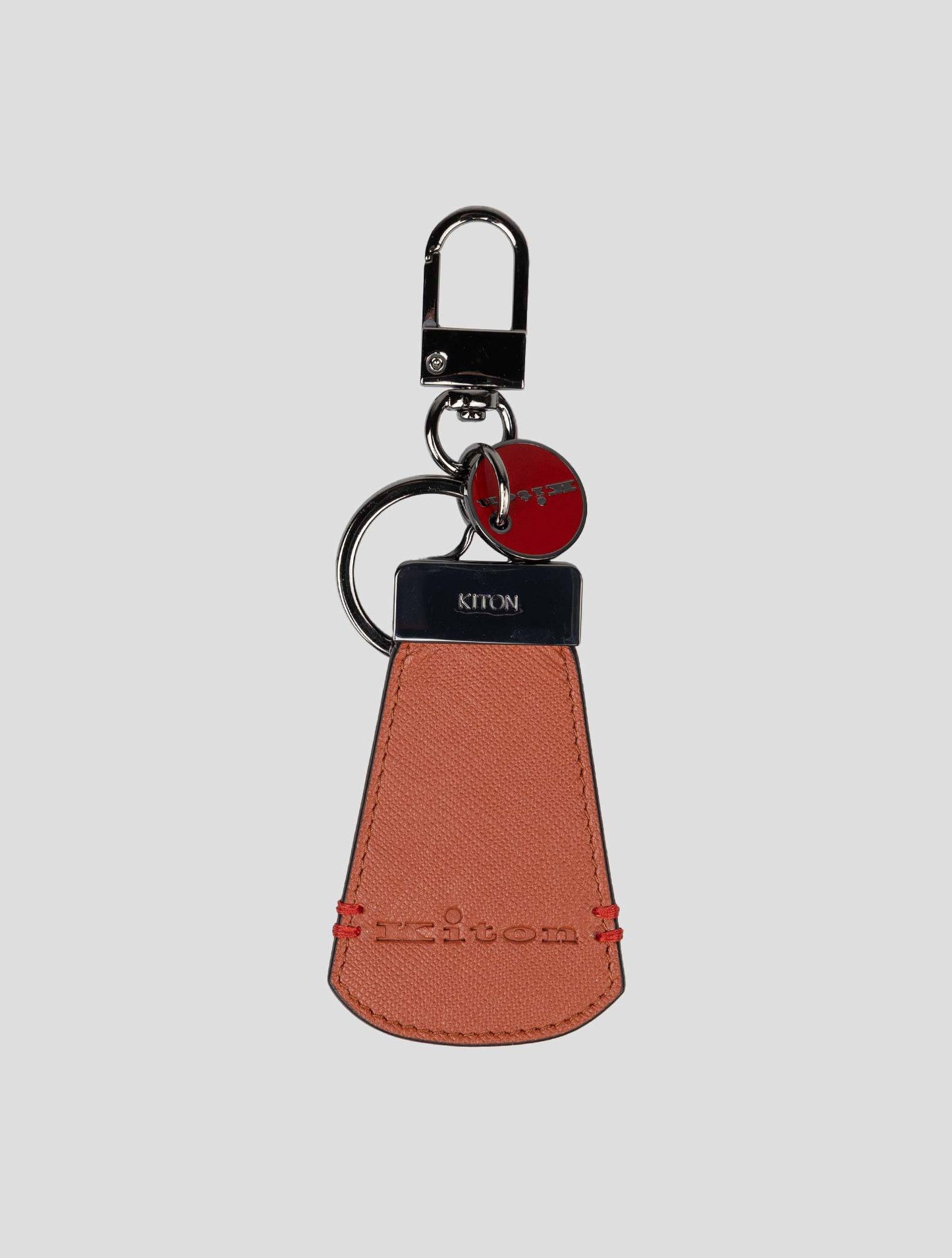 The Kiton Light Brown Leather Keychain is a sophisticated accessory that combines timeless style with practicality. Made from 100% premium leather, it features a rich light brown tone that adds warmth and elegance to your everyday essentials. The smooth texture and fine stitching highlight Kiton's dedication to exceptional craftsmanship. Compact and lightweight, it is designed for effortless portability while maintaining a luxurious feel. The durable metal hardware ensures secure key attachment, providing reliability for daily use. Perfect as a personal accessory or a thoughtful gift, this keychain embodies Kiton's signature blend of functionality and refined Italian design | Mod: UPEA021N012280-1